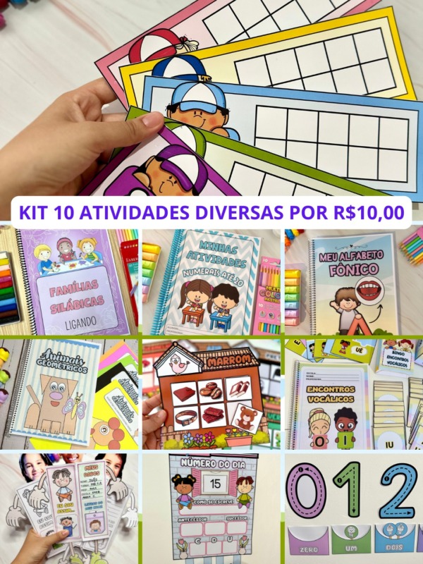 Este é um kit completo com 10 atividades diversificadas, perfeitas para trabalhar de forma lúdica e significativa com os alunos!