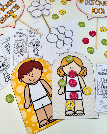 Trabalhe o tema Maio Laranja com amor, cuidado e criatividade com este kit incrível em PDF pronto para impressão 🖨️! Ideal para abordar a conscientização de forma lúdica e educativa com os pequenos 👧👦.